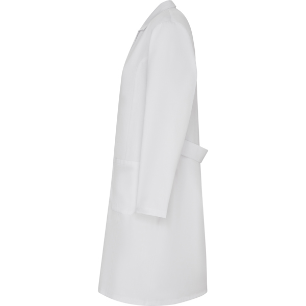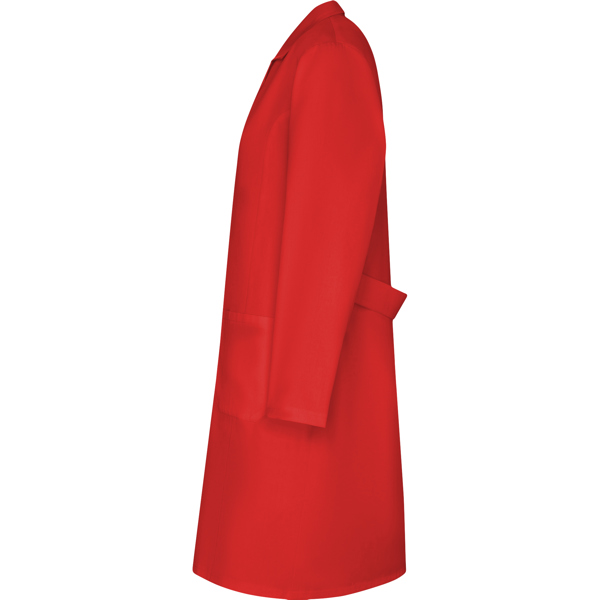 Bata de servicios de manga larga entallada. · Cuello con solapa. · Apertura central con 5 botones a tono. · Un bolsillo en pecho y dos laterales. · Cinturilla trasera. Disponible en tallas: XS a la 2XL En colores: Blanco, rojo, Royal, Marino, Verde Lab. Material: 65% poliéster / 35% algodón, sarga de 195 g/m².Modelos para laboratorio, sanidad, estética, alimentación y limpieza.
